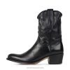 Black ankle boot with strap system on the shaft for better access for the foot to the inside. A 7.5 centimeter heel to enhance your beauty.