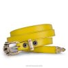 White leather belt with a special rhinestone buckle, thin in thickness with a classic and feminine style.