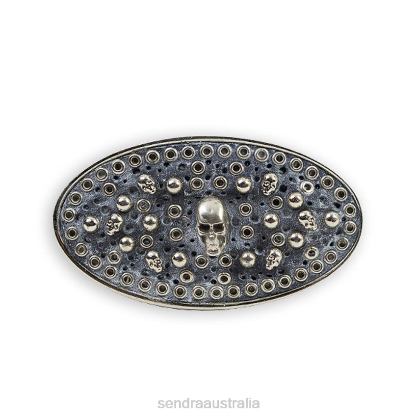 Oval nickel buckle with an aged look, with embossed skulls, a biker accessory for all your belts, with Sendra quality and guarantee.