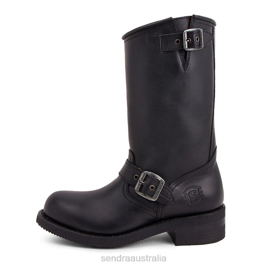Sendra boot with a steel toe, in black leather, with a side buckle on the instep and shaft, a very comfortable Biker model, with a round toe and straight heel.
