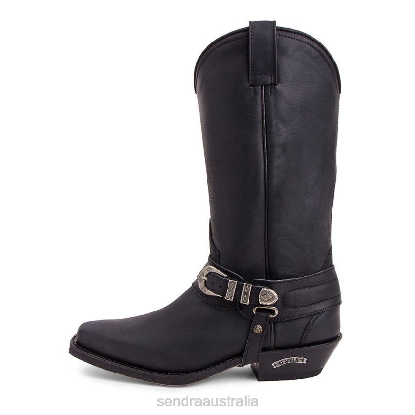 Sendra boot in black oiled leather, plain, with cowboy-style buckled ankle harness, square toe and half Cuban heel, a benchmark model in our collection. Leather sole and Goodyear welt construction.