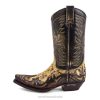 Brown model with embroidery of an eagle both on the shaft and on the toe. Semi-cuban 4.5 cm heel for greater comfort when walking without losing elegance.