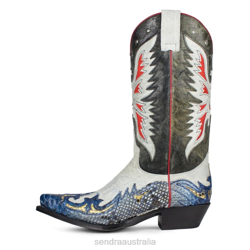 Boot with scaled leather on the bottom, white leather on the instep and an eagle embroidery with red touches on the shaft. Semi-cuban 4.5 cm heel for greater comfort when walking without losing elegance.