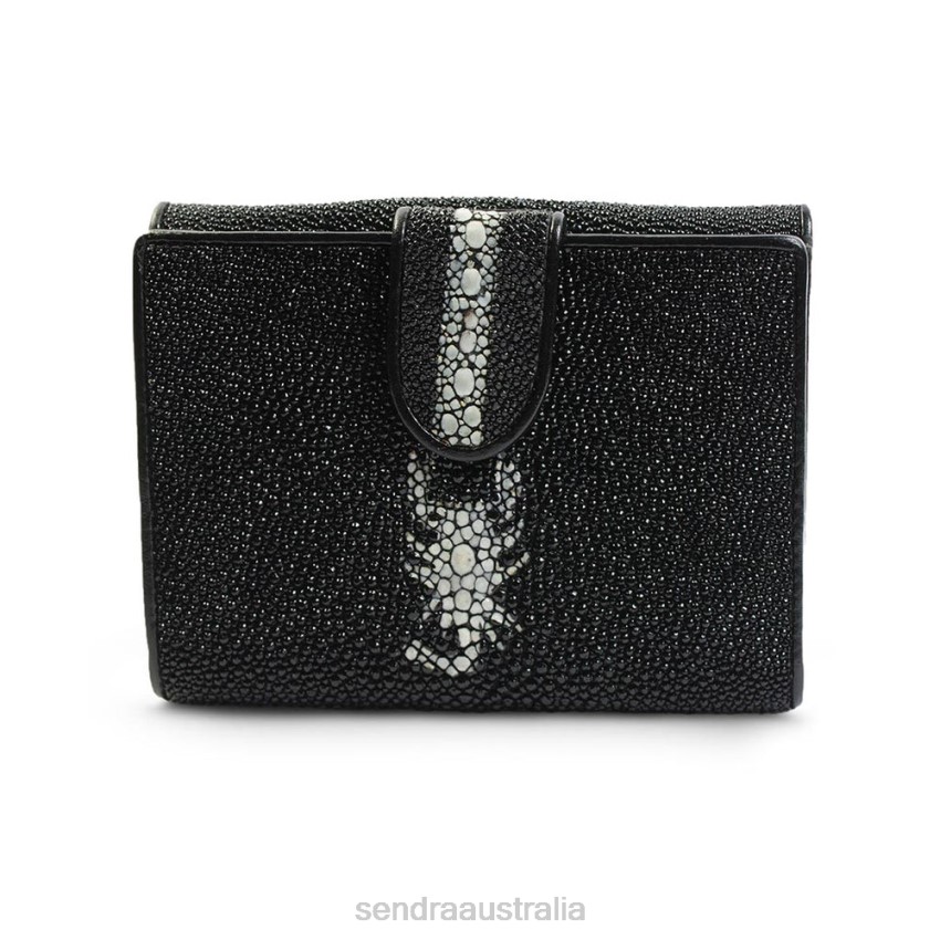 Sendra women’s wallet in black stingray skin with scorpion pattern. Interior with various slots for cards and bills, and exterior purse pocket with gusset with the Sendra guarantee