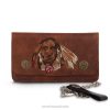 Sendra leather wallet, with embroidery, biker style with chain, and carabiner closure for greater security, 1 compartment for bills and 3 compartments for documents and cards with our Sendra guarantee.