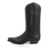 If you’re seeking initiation in the world of Sendra, this is the model for you: slightly pointed toe, half Cuban heel and leather sole, all black leather, the ideal model for a first pair of cowboy boots.