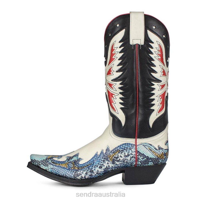 Great boot with a combination of light colours on the toe, instep and heel and dark touches on the shaft. Blue scaled leather on the bottom of the boot. Semi-cuban 4.5 cm heel for greater comfort when walking.